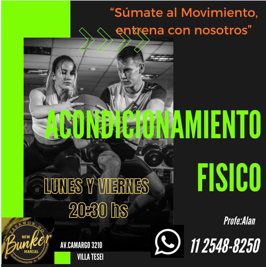 Actividades Clases De Taewon-Do Lunes Y Viernes 18:30hsComunicate: 11 5875-7036 Clases De Taekwo-DoDanes Miercoles 19:00hsSabados 10:00hs Clases de Taekwon-DoKids (3 a 5 Años) Martes Y Jueves 18:00hs Clases de Taekwon-DoJuveniles y Adultos GUPS Miercoles 19:00hsSabado 10:00hs Clases de Taekwon-DoAdultos Mayores Adultos mayores (+50)Dias y horarios a convenir Clases De Combate Mates Y Viernes 21:00hs a 23:00hs Kick Boxing Martes y Jueves 21:00hsComunicate: 11 6892-4674 Clases de GAP Lunes y Miércoles 09:30hs Clases De GAP Miercoles y Viernes 16:30hs Clases De Zumba Martes Y Jueves 15:00hs Entrenamiento Funcional Lunes a viernes 07:00hsMartes y Jueves 20:15hs Entrenamiento Funcional Martes y Jueves 08:30hs Acondicionamiento Físico Lunes Y Viernes 20:30hs Instructorado Intensivode Aerobox Sabado 10:00hs a 14:00hs PASE LIBRE GYM Comunicate: 11 5492-5740 Spinning Martes y Jueves 21:00hs Clases De Stretching Miercoles 18:00hsViernes 17:00hs Hatha Yoga Martes y Jueves 09:30hs Masajes Relajantes Duración 30 minutosComunicate: 11 5492-5740 REIKI Turnos: 11 5492-5740 TAROT Martes y Jueves 21:00hsComunicate: 11 5492-5740